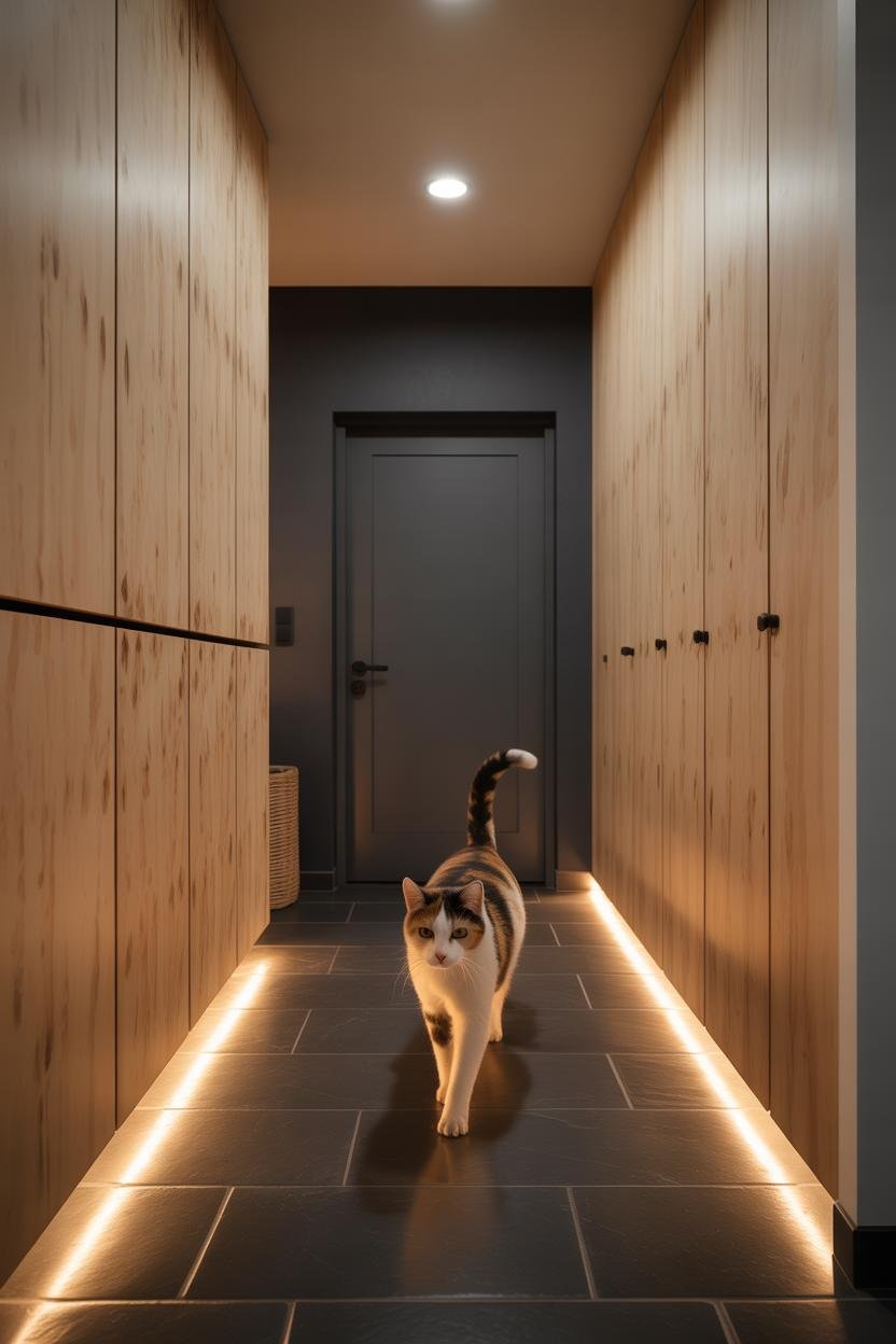 - LED Motion Lighting: Thin, unobtrusive LED strips that turn on with movement—safe for pet eyes and a moody accent in your entryway.